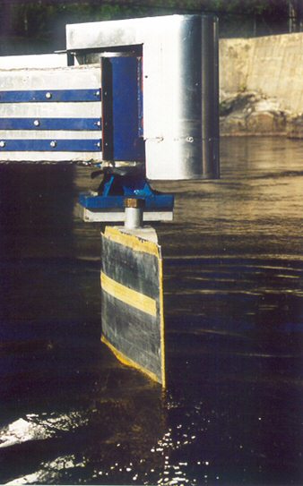 Buskerud Kraftproduksjon AS (BKP) was most helpful in finding a site for us and we chose downstream Skollenborg, a Kaplan site, at Kongsberg. We deployed Bravo and started testing. In November a 100 year flood, came, and Bravo capsized. It was salvaged and grounded.